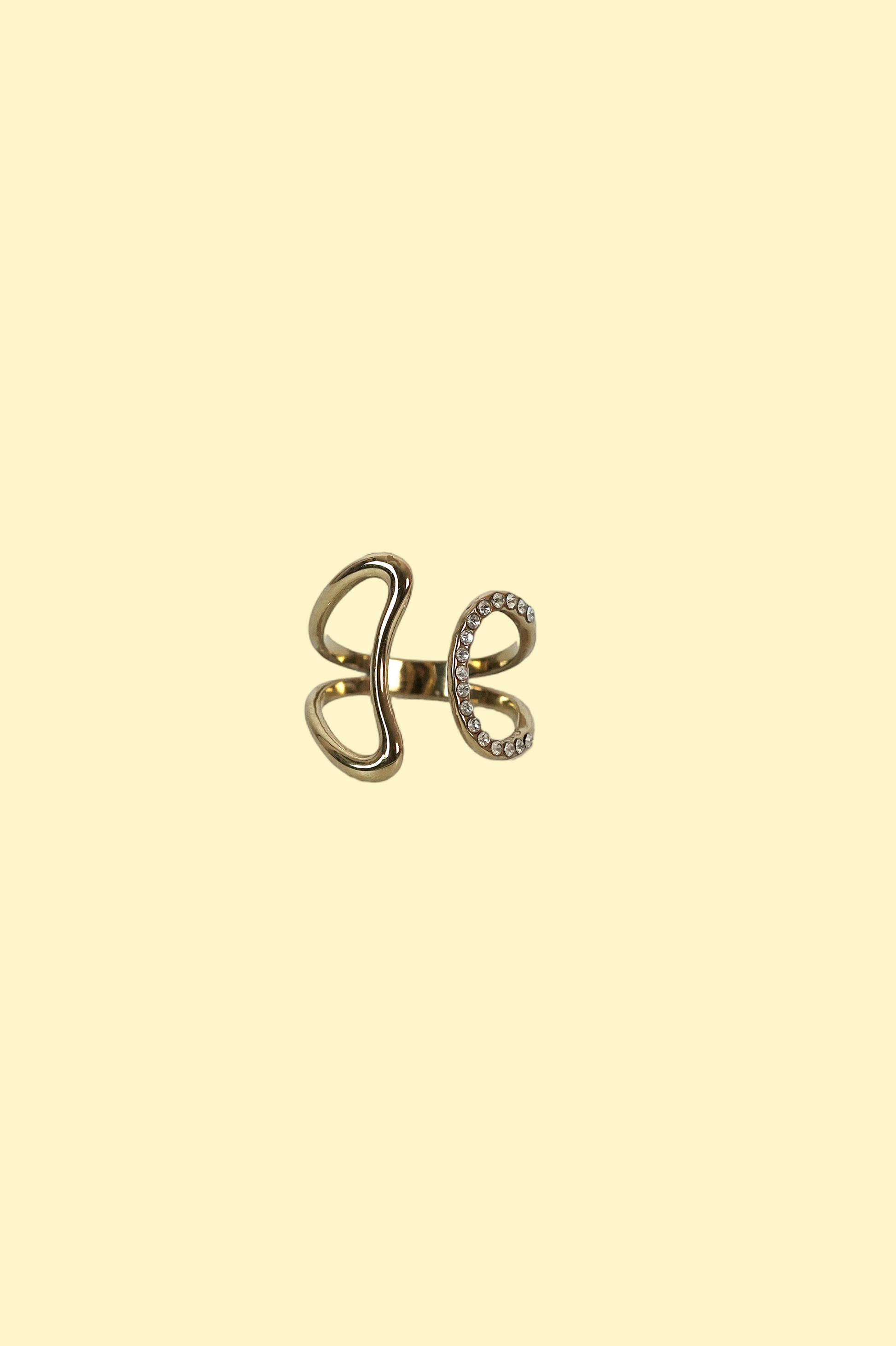 Son design géométrique épuré est sublimé par un côté délicatement serti de strass en oxyde de zirconium, apportant une touche lumineuse et raffinée.